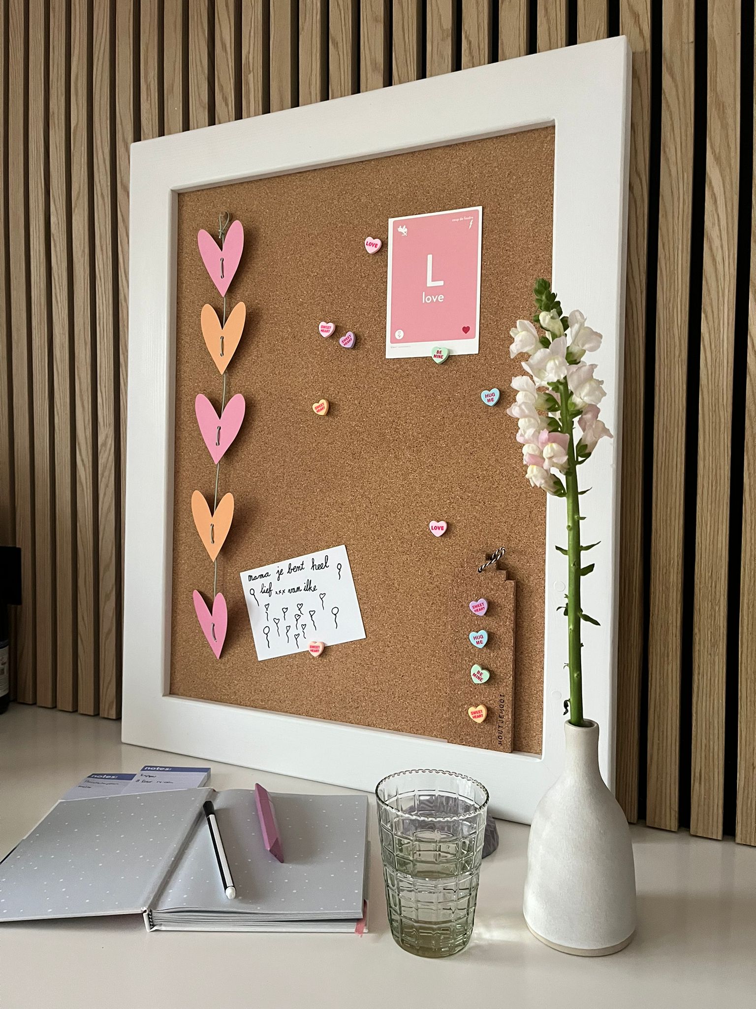 Dit prikbord brengt eenvoud, frisheid en natuurlijkheid samen in één stijlvol ontwerp.
