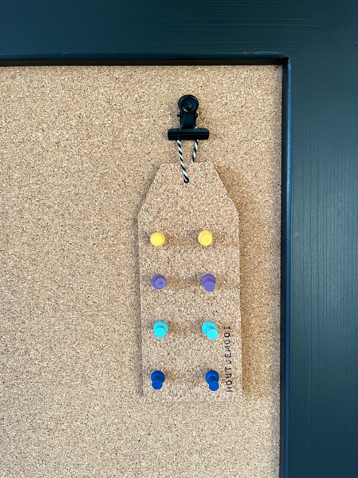 Hele orginele pins voor op een prikbord.